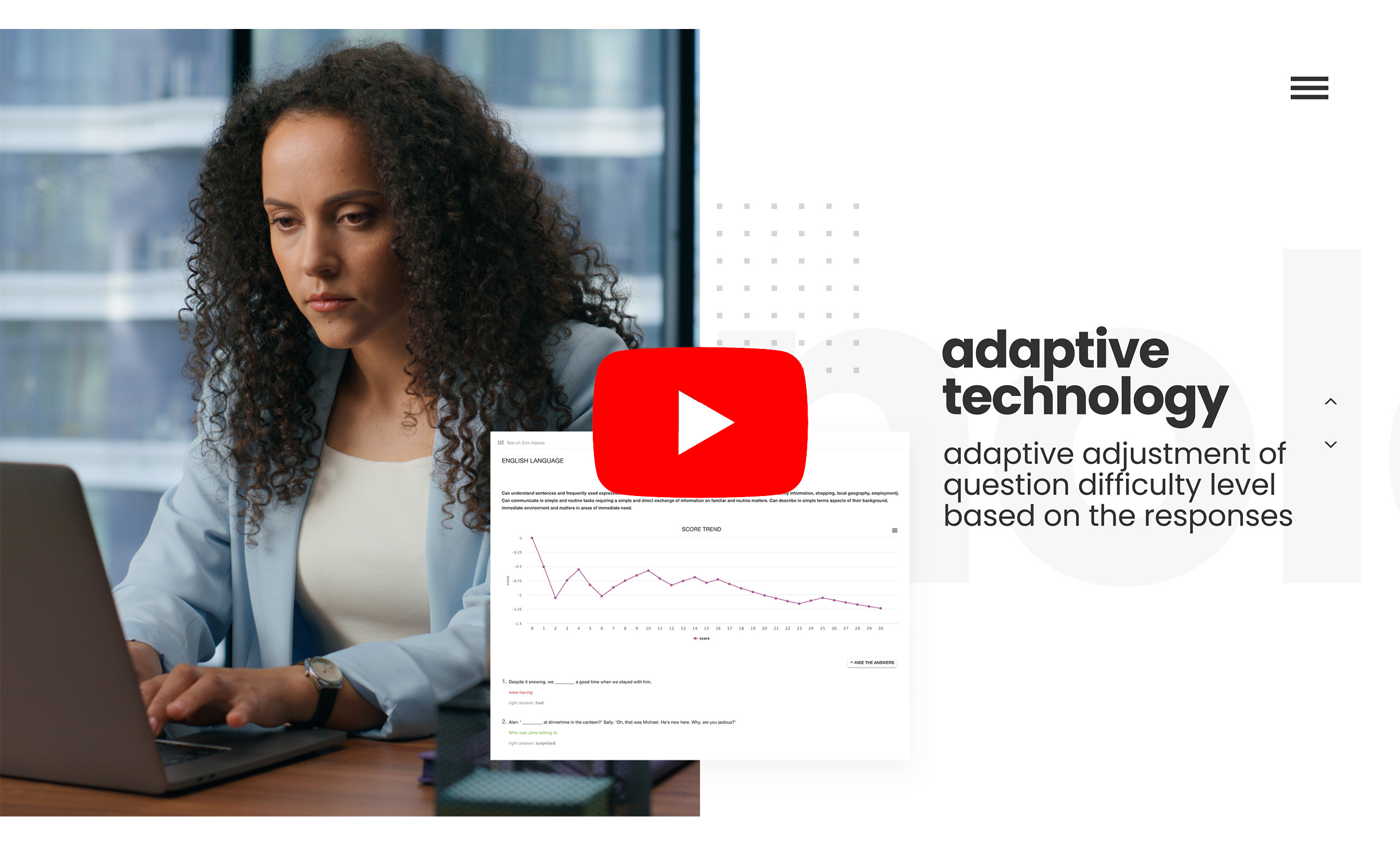 Un système de recrutement vidéo, des tests psychologiques, des tests de compétences linguistiques et des tests professionnels basés sur une technologie adaptative vous permettent de :